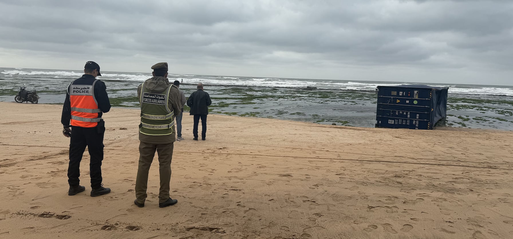 En images, les premiers conteneurs tombés du navire Ionikos s’échouent sur le littoral de Casablanca