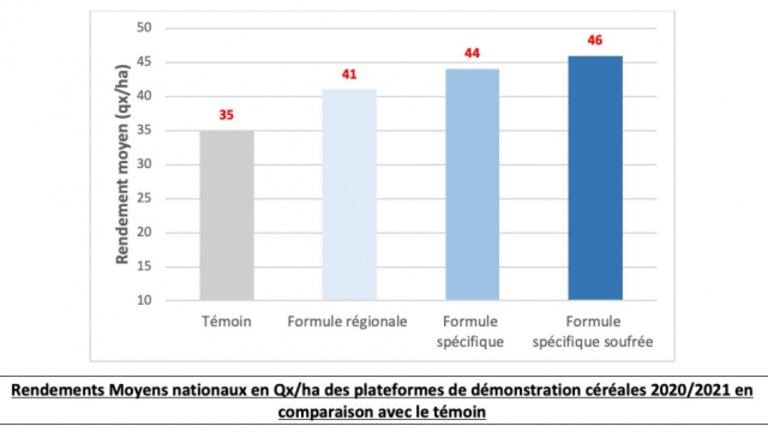 Mieux encore, l’introduction de la formule spécifique soufrée a fait preuve de résultats remarquables en termes de rendement et de qualité de production, estime le géant marocain des phosphates. La formule spécifique soufrée a ainsi généré un rendement chez les céréales de 46 qx/ha, avec un gain de 5% par rapport à la formule spécifique, et 11% de gain par rapport à la formule régionale.