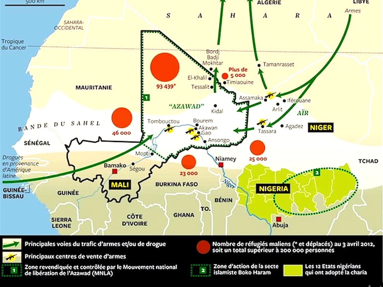 Selon une publication du Collège de Défense de l’OTAN, «les camps de réfugiés sahraouis du front Polisario du sud-ouest algérien, le sud de la Libye ou le nord du Mali, sont également des zones de transit pour la contrebande d’armes. En raison de sa position stratégique, la ville de Tindouf représente le point de passage idéal entre le Sahel de l’est et le Sahel de l’ouest».