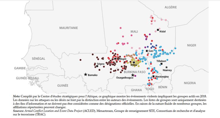 Selon l’agence Africa Center du Département de la défense des États-Unis, «le nombre d’événements violents signalés liés à l’activité d’un groupe islamiste militant dans le Sahel a doublé chaque année depuis 2016». Le Mali est le pays le plus touché par le terrorisme, de par ses frontières poreuses avec l’Algérie. «Le Mali reste le foyer le plus important de ces violences, représentant environ 64% des événements signalés au Sahel» d’après la Défense américaine.
