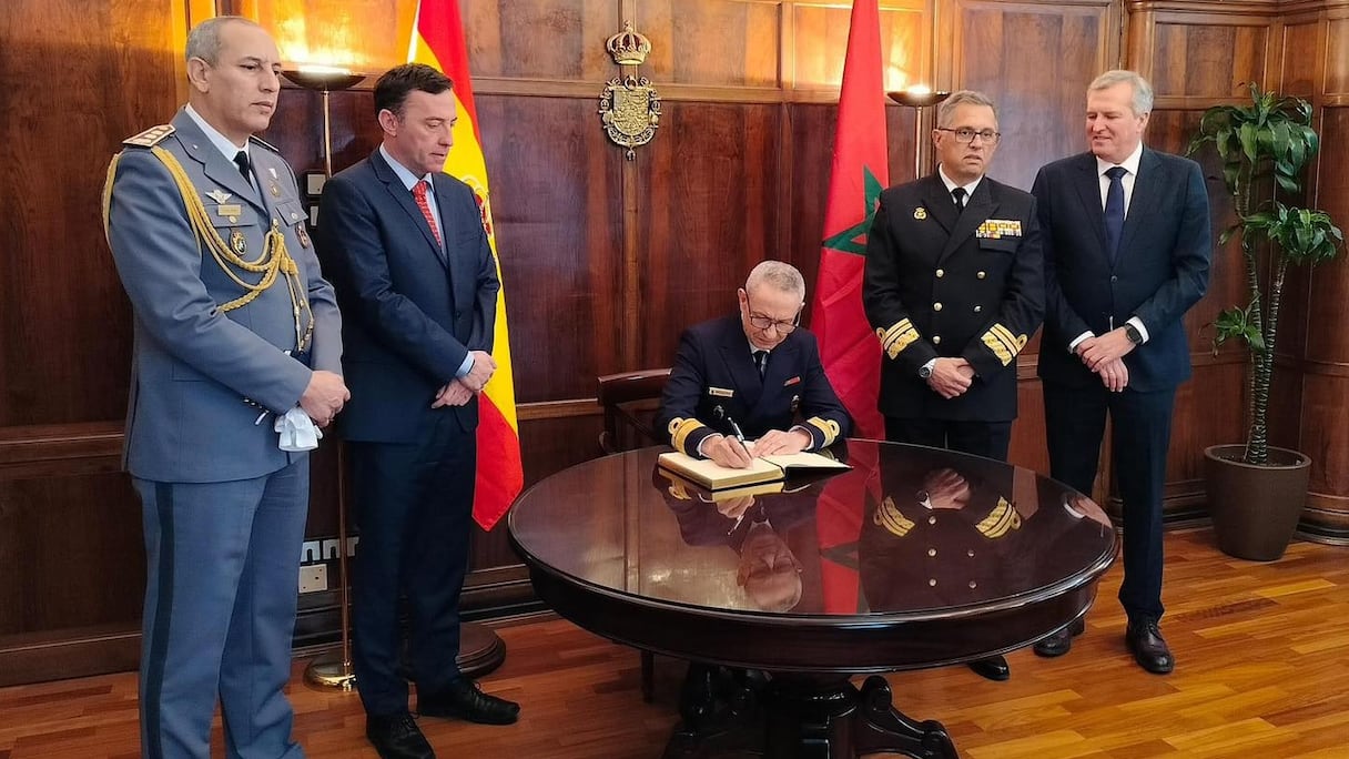 La délégation marocaine, conduite par le contre-amiral Mohamed Tahin, inspecteur de la Marine royale, a été reçue par le président de la société Navantia, Ricardo Dominguez, et le directeur de l’unité industrielle, responsable des travaux de construction, Antonio Rodriguez. L’inspecteur de la Marine royale a apposé sa signature dans le livre d’honneur du chantier naval, avant de se diriger vers l’atelier de fabrication où se déroulaient les opérations de découpe des tôles.