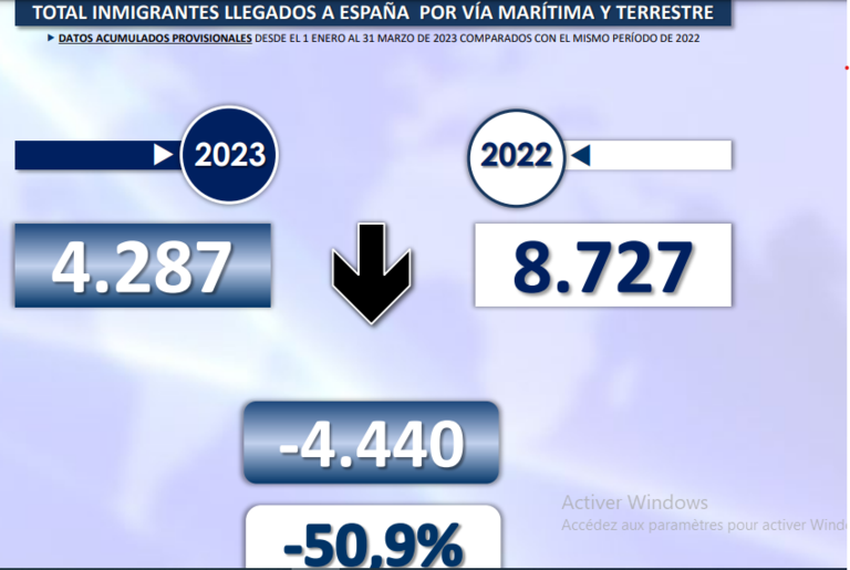 Dans les détails, 4.287 migrants sont arrivés sur les côtes espagnoles durant cette période, loin des 8.727 qui avaient débarqué à pareille période en 2022. La baisse a été d’ailleurs surtout prononcée au niveau des entrées maritimes, avec 4.067 personnes enregistrées, contre 7.605 en 2022.