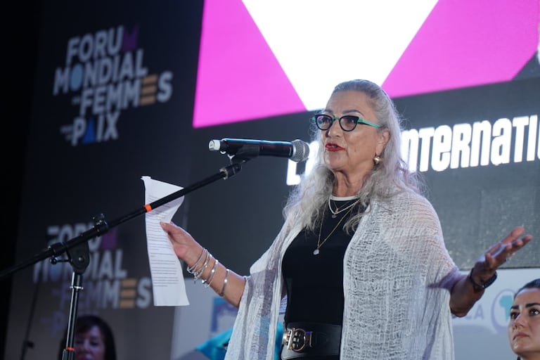 La solidarité internationale des femmes est notre arme la plus forte, notre bouclier, notre rempart. Les femmes sont des guerrières, des héroïnes du quotidien, des guerrières de la vie, des guerrières de la paix. Elles portent et protègent l’avenir du monde.